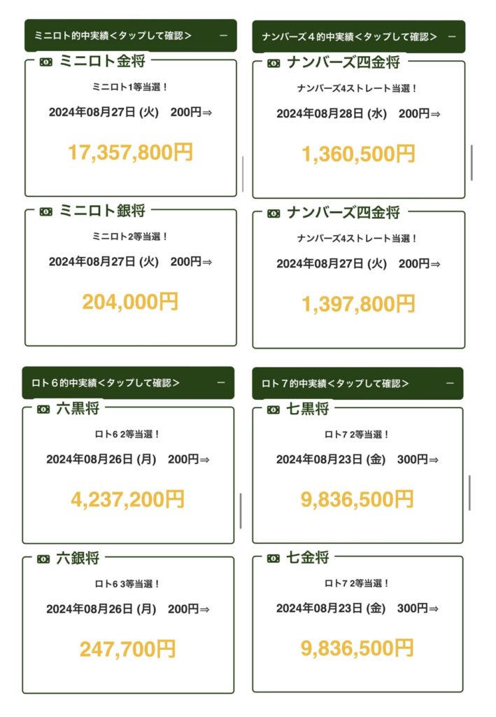 ナンバーズ3の少額プラン~ロト7の高額プランまでバランスよく的中してるね🎯✨