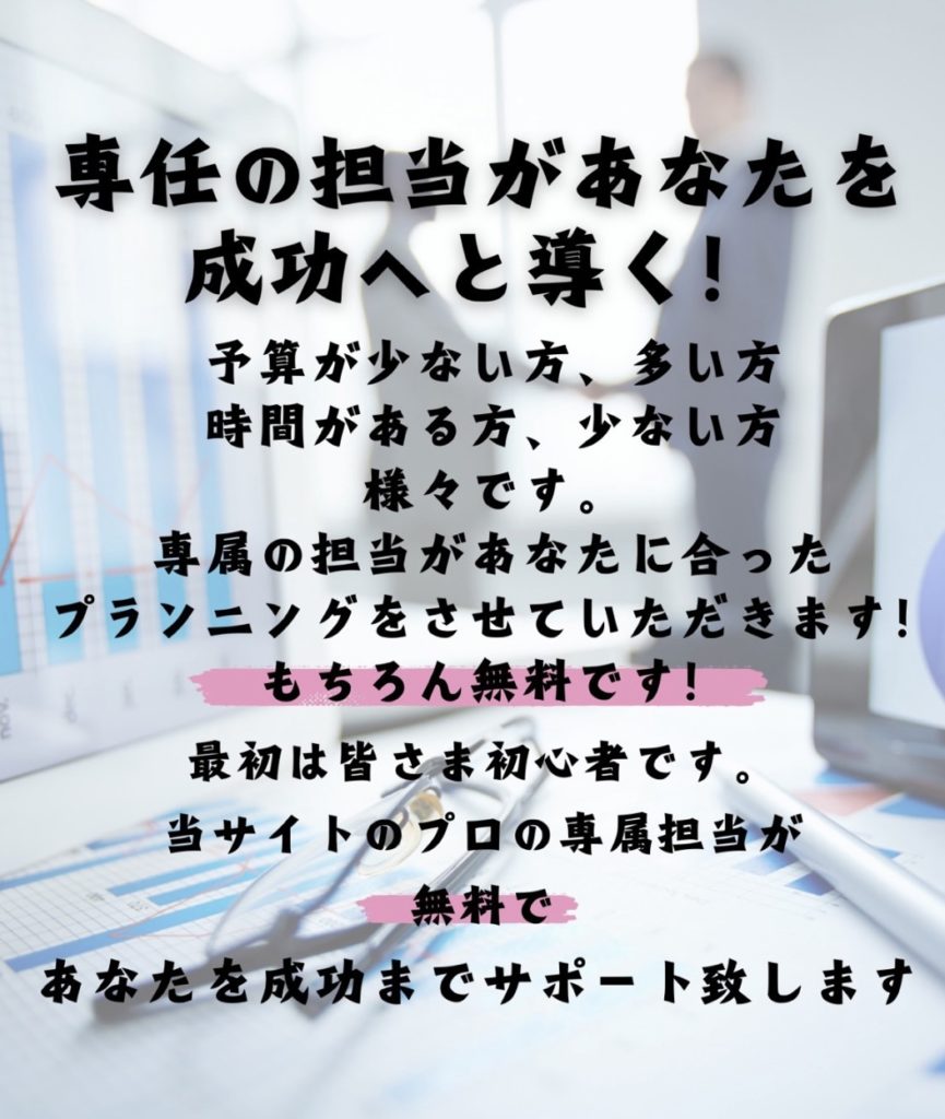 ・当サイトのプロの専属担当が無料であなたを成功までサポート致します