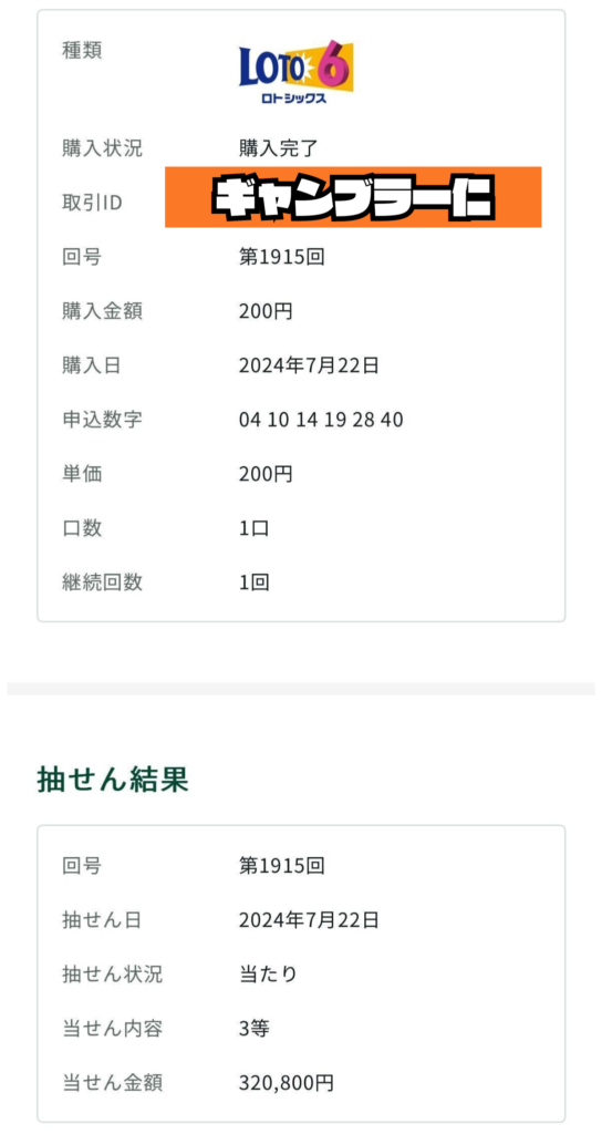 | 2024/07/22 | ロト6 三等予想 | 320,800円 |