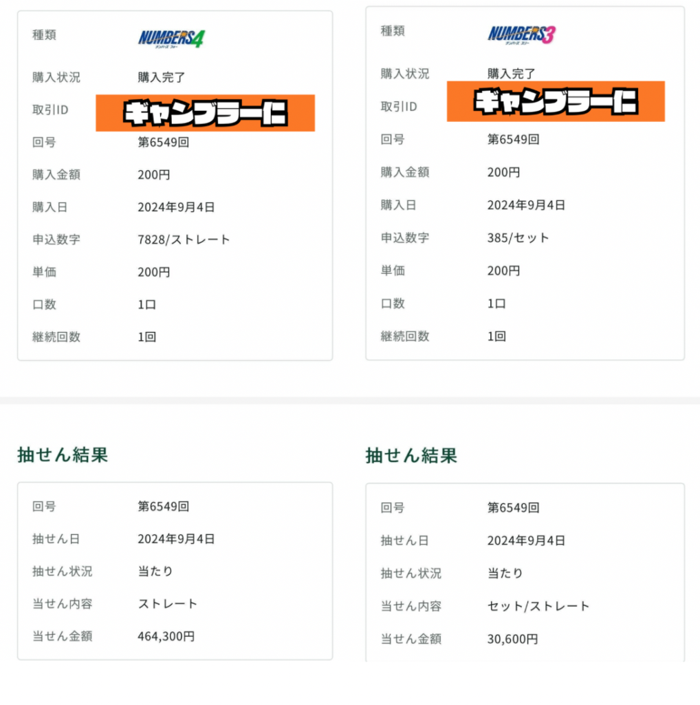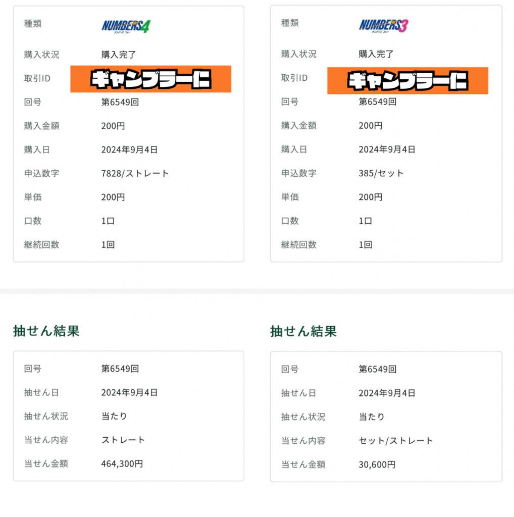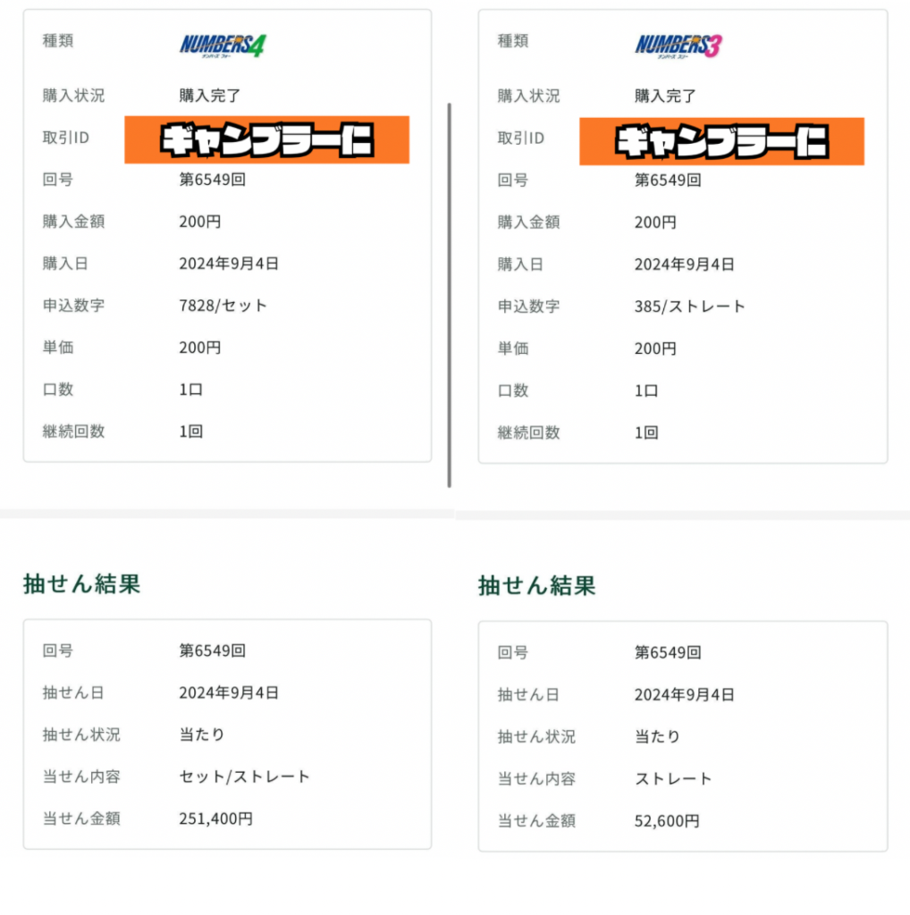 ナンバーズ4で2114万円の当選経験もあるよ!!