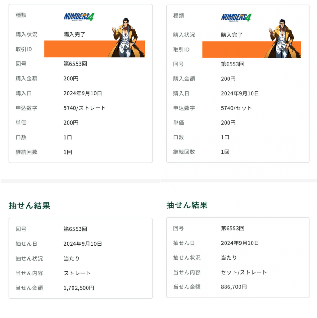 ナンバーズ4で2114万円の当選経験もあるよ!!