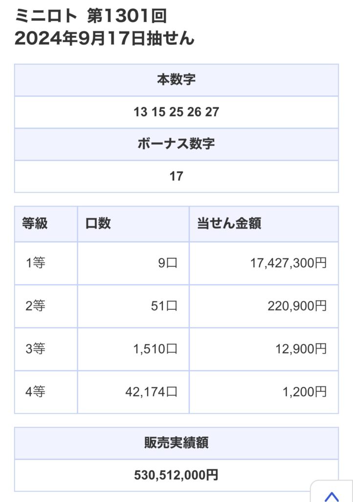 | 第1301回 2024-09-17(火) | 13 15 25 26 27 (17) |