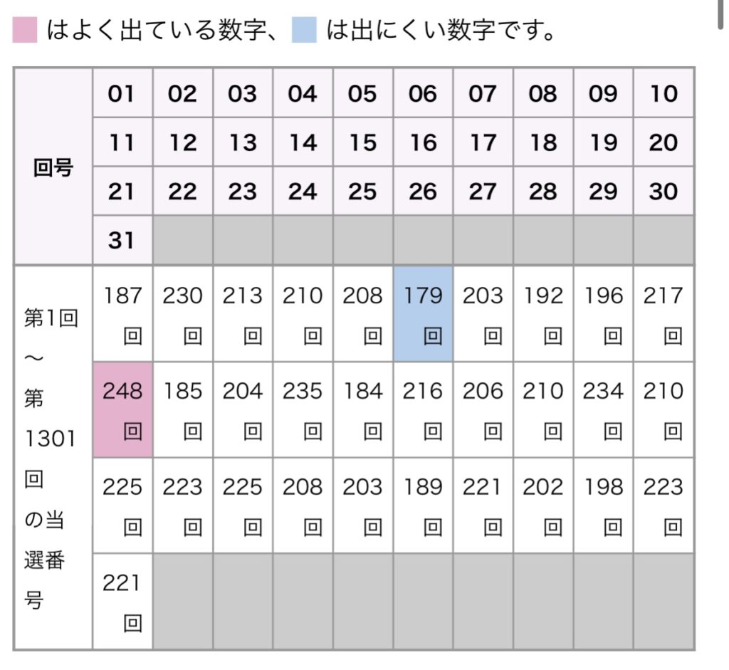 | 第1297回 2024-08-20(火) | 01 12 17 21 28 (31) |