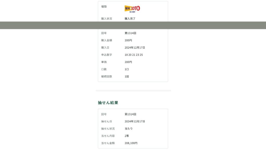 実際の当選画像(スクショ)